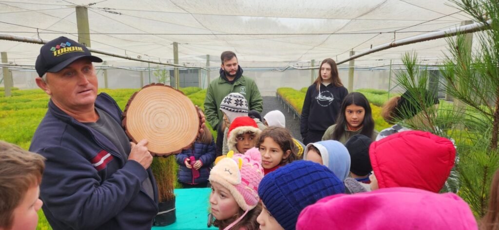 Todas as explicações foram realizadas pelo responsável pelo viveiro e funcionário há 28 anos, sr. João e por um dos netos do fundador da empresa, sr. Amilcar, Gabriel Dias.  Ao fim da visita, todos receberam uma muda de pinus para plantio.
