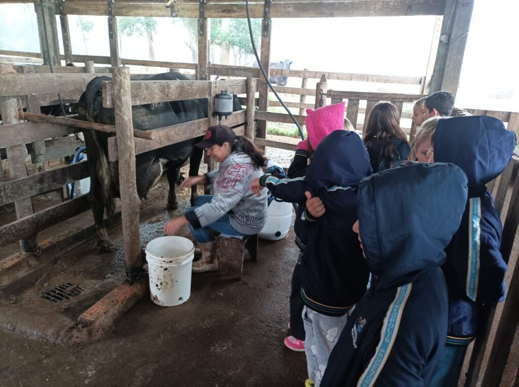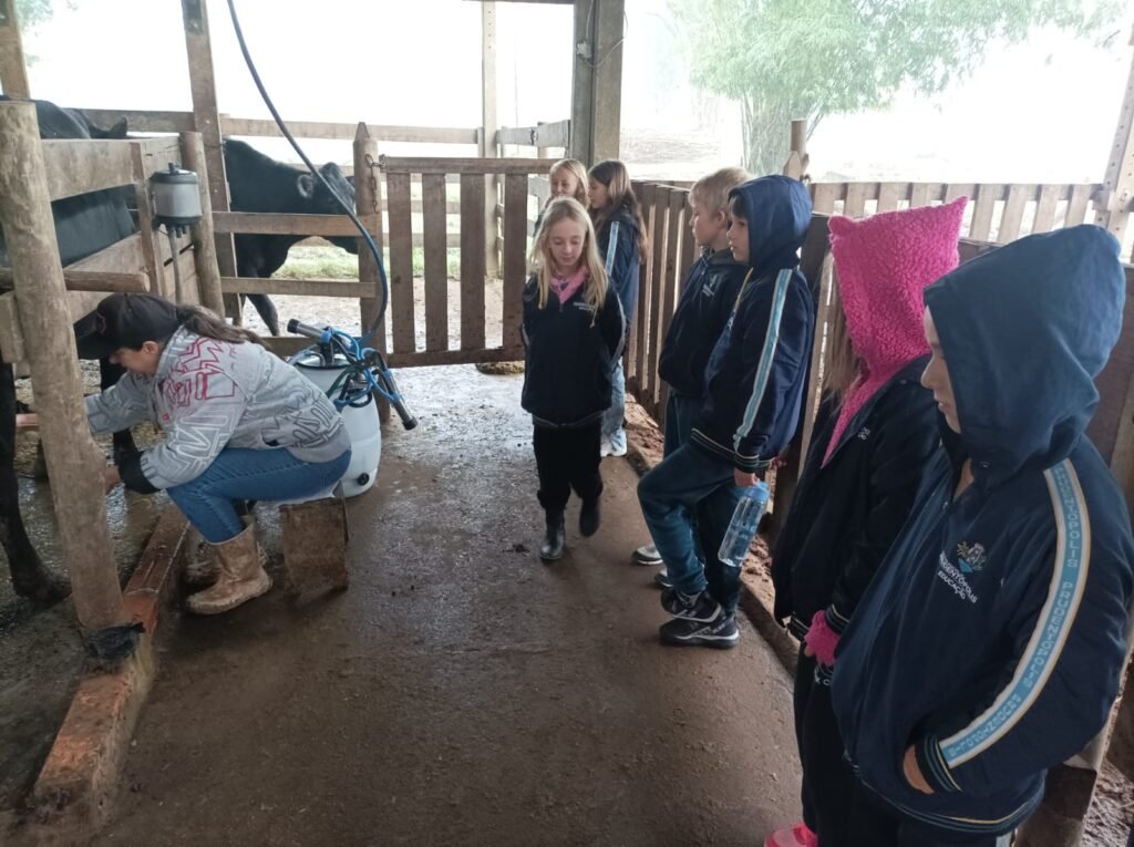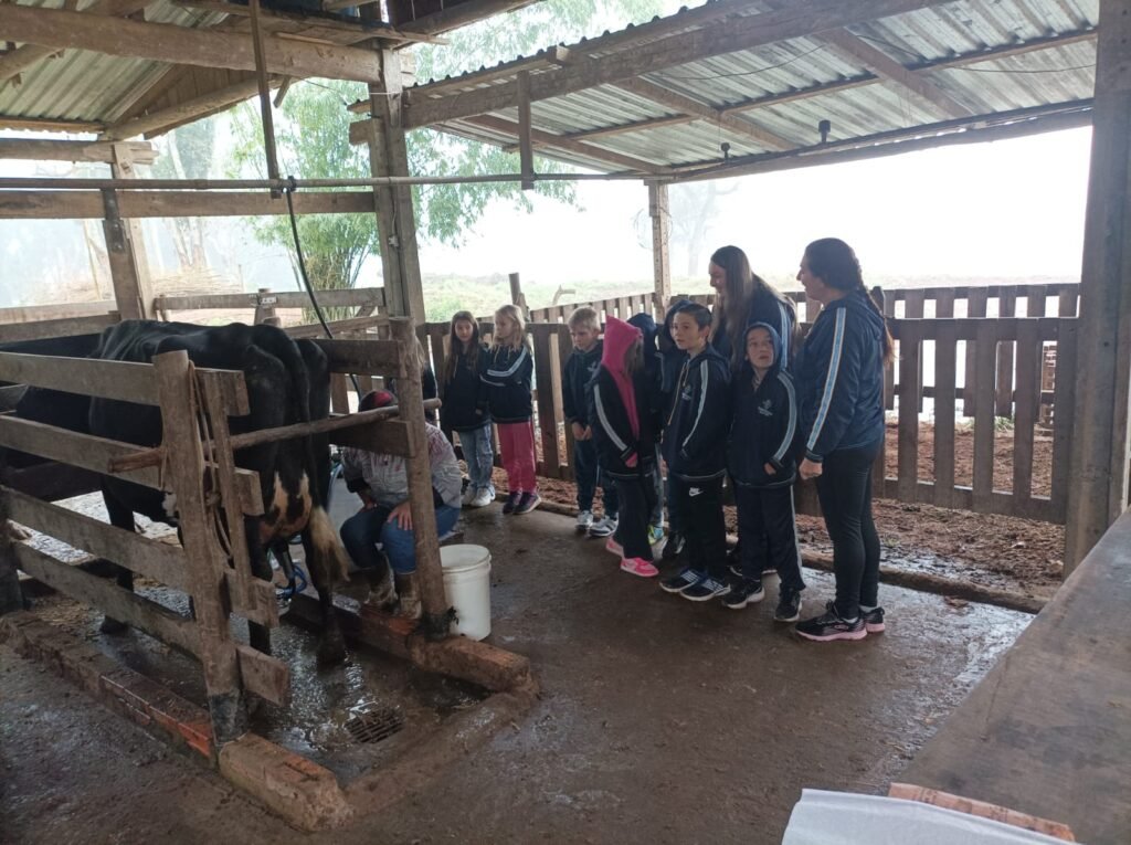 Durante a visita, os alunos puderam observar a jornada de trabalho da família, cada etapa para realização da atividade, a estrutura onde é realizada a ordenha das vacas, o armazenamento do leite até o caminhão fazer o transporte para o laticínio e o armazenamento e a oferta da alimentação dos animais. Além disso, conversaram com o produtor e sua esposa sobre as etapas da produção, as vantagens e os desafios que encontraram para produzir e comercializar o produto.