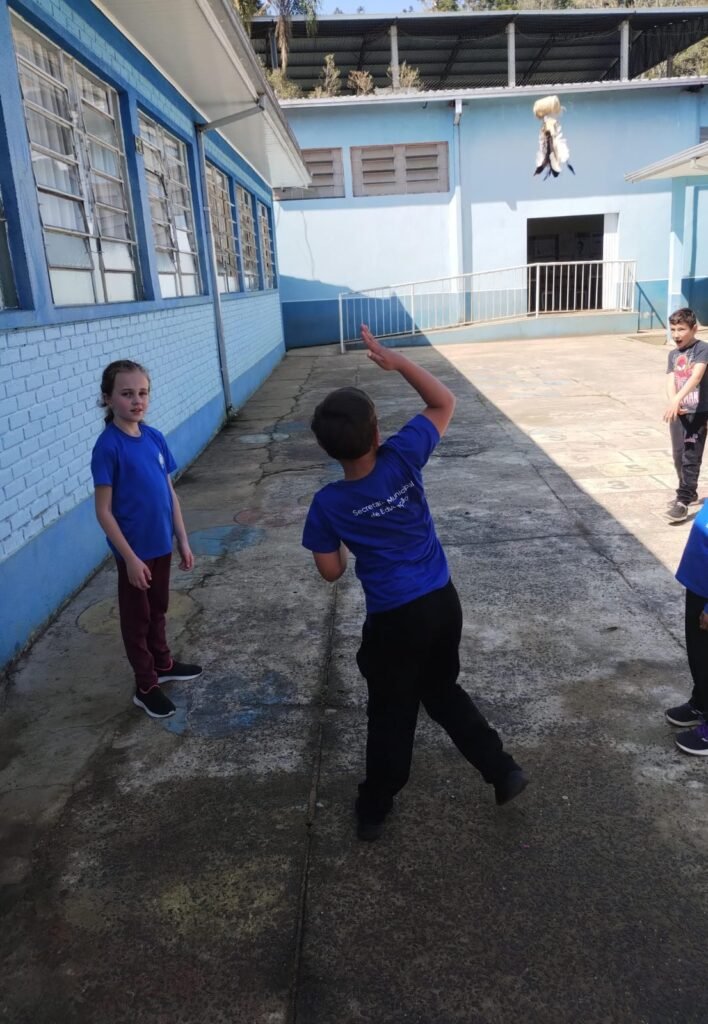Unindo aprendizado e cultura popular, as crianças também confeccionaram petecas artesanais utilizando palha de milho, barbante e penas. A atividade resgatou brincadeiras tradicionais e incentivou a criatividade, o trabalho manual e o respeito às tradições do campo.