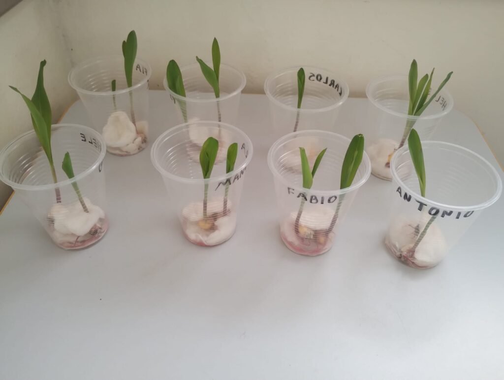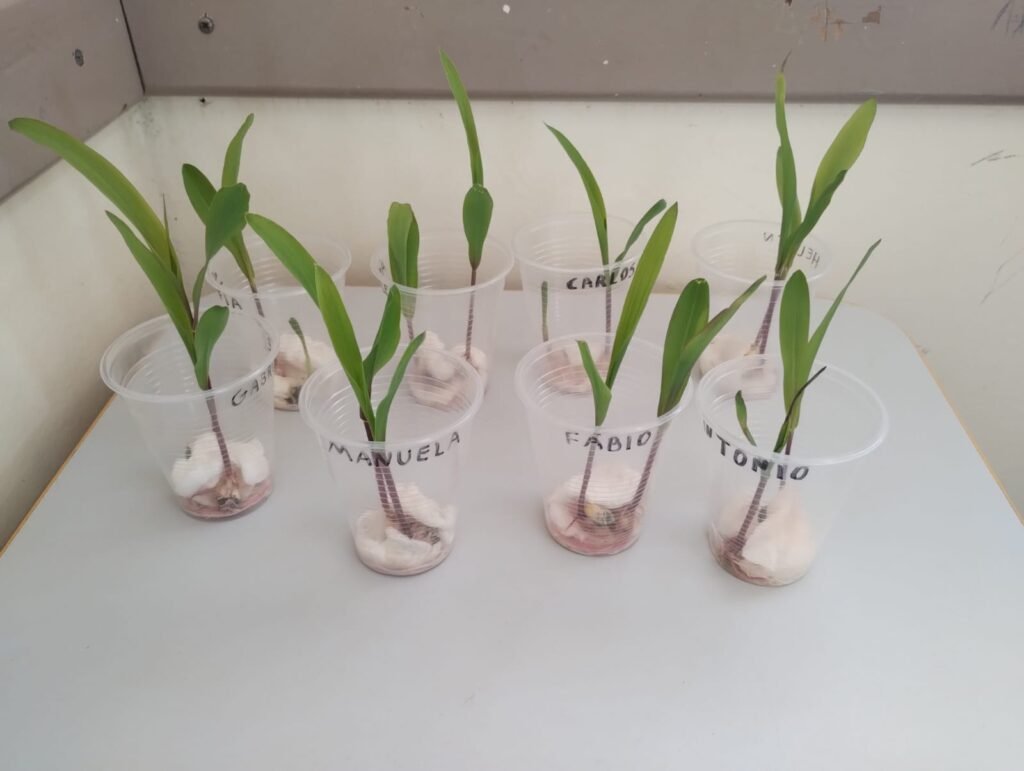 De volta à escola, cada criança plantou sua própria semente de milho em algodão, acompanhando o processo de germinação ao longo dos dias. A atividade reforçou o aprendizado sobre os cuidados necessários para o crescimento das plantas — como água, luz e calor — e estimulou valores como responsabilidade e cuidado com o meio ambiente.